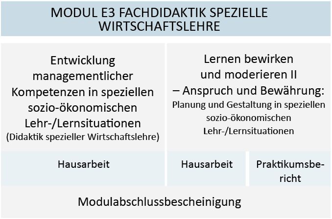 Wahlpflichtfach Modul E3 (Fachdidaktik spezielle Wirtschaftslehre) als Bestandteil des Hauptstudiums.